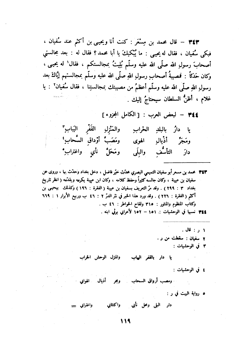 قال محمد بن مسعر: كنت أنا ويحيى بن أكثم عند سفيان، فبكى سفيان، فقال له يحيى: ما يبكيك يا أبا محمد؟ فقال له: بعد مجالستي أصحاب رسول الله صلى الله عليه وسلم بليت بمجالستكم، فقال له يحيى، وكان حدثاً: فمصيبة أصحاب رسول الله صلى الله عليه وسلم بجالستهم إياك بعد رسول الله صلى الله عليه وسلم أعظم من مصيبتك بمجالستنا، فقال سفيان: يا غلام، أظن السلطان سيحتاج إليك.