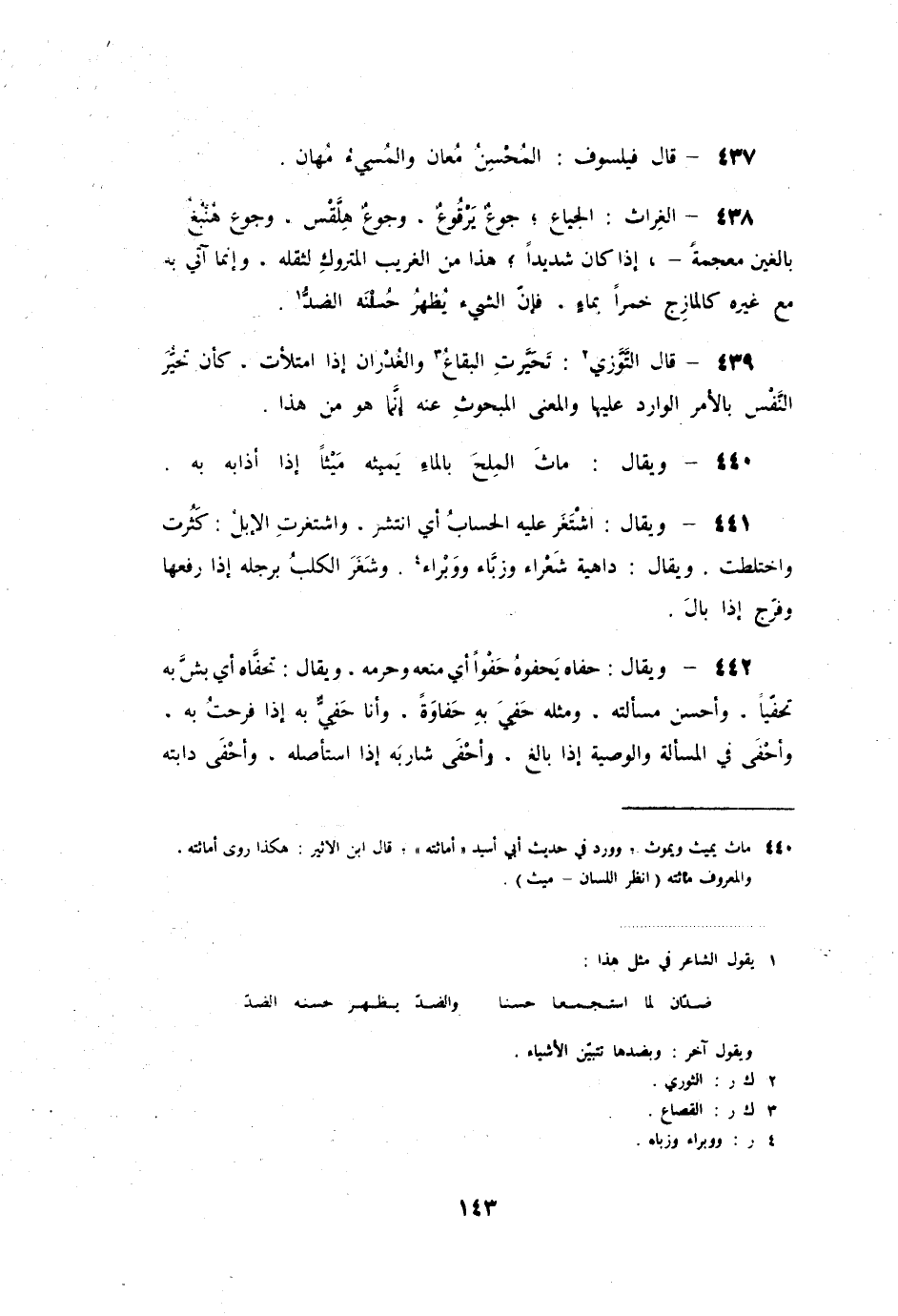 الغراث: الجياع؛ جوع يرقرع، وجوع هلقس، وجوع هنبغ بالغين معجمة -، إذا كان شديداً؛ هذا من الغريب المتروك لثقله، وإنما آتي به مع غيره كالمازج خمراً بماء. فإن الشيء يظهر حسلنه الضد.