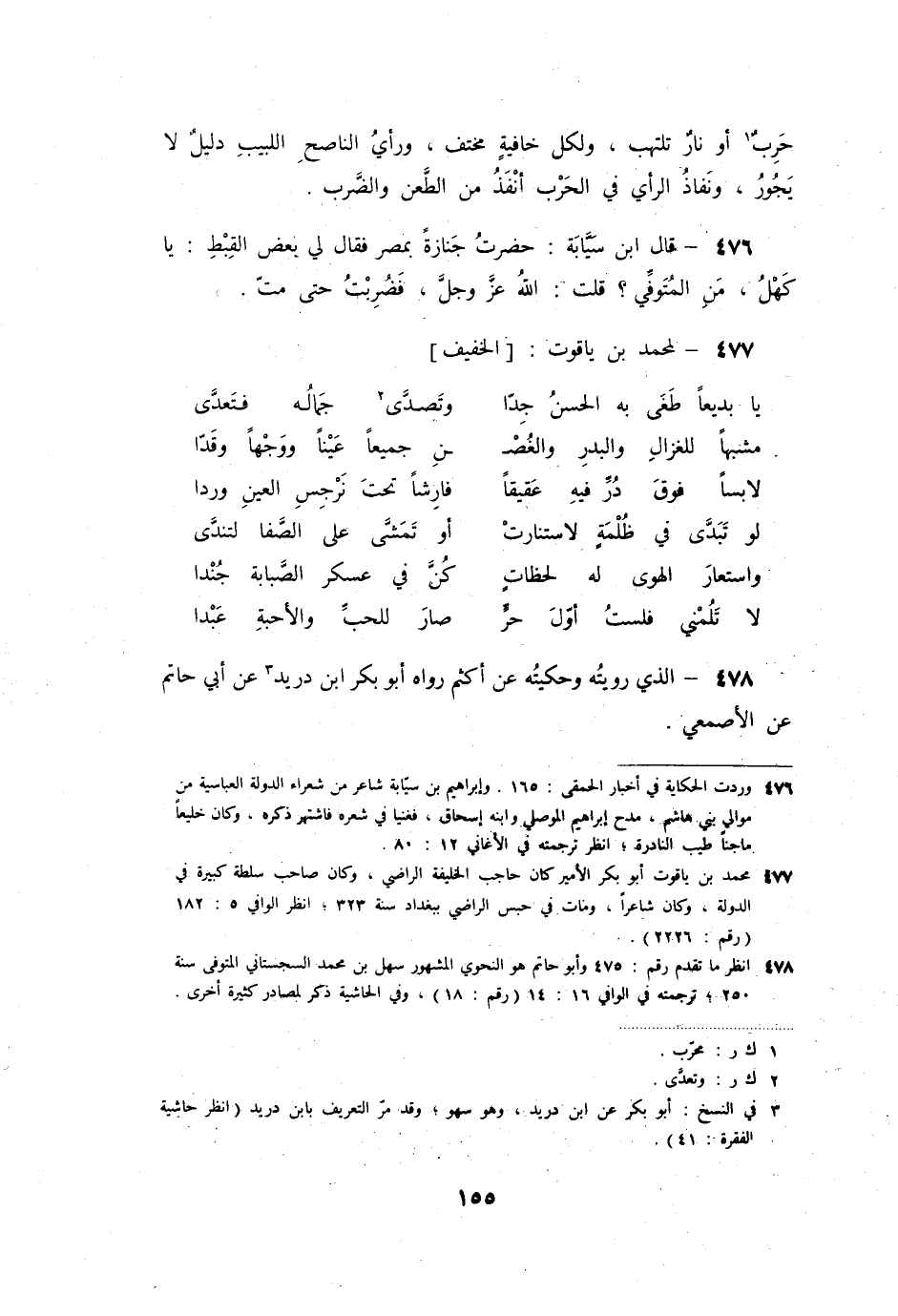 الذي رويته وحكيته عن أكثم رواه أبو بكر ابن دريد عن أبي حاتم عن الأصمعي.