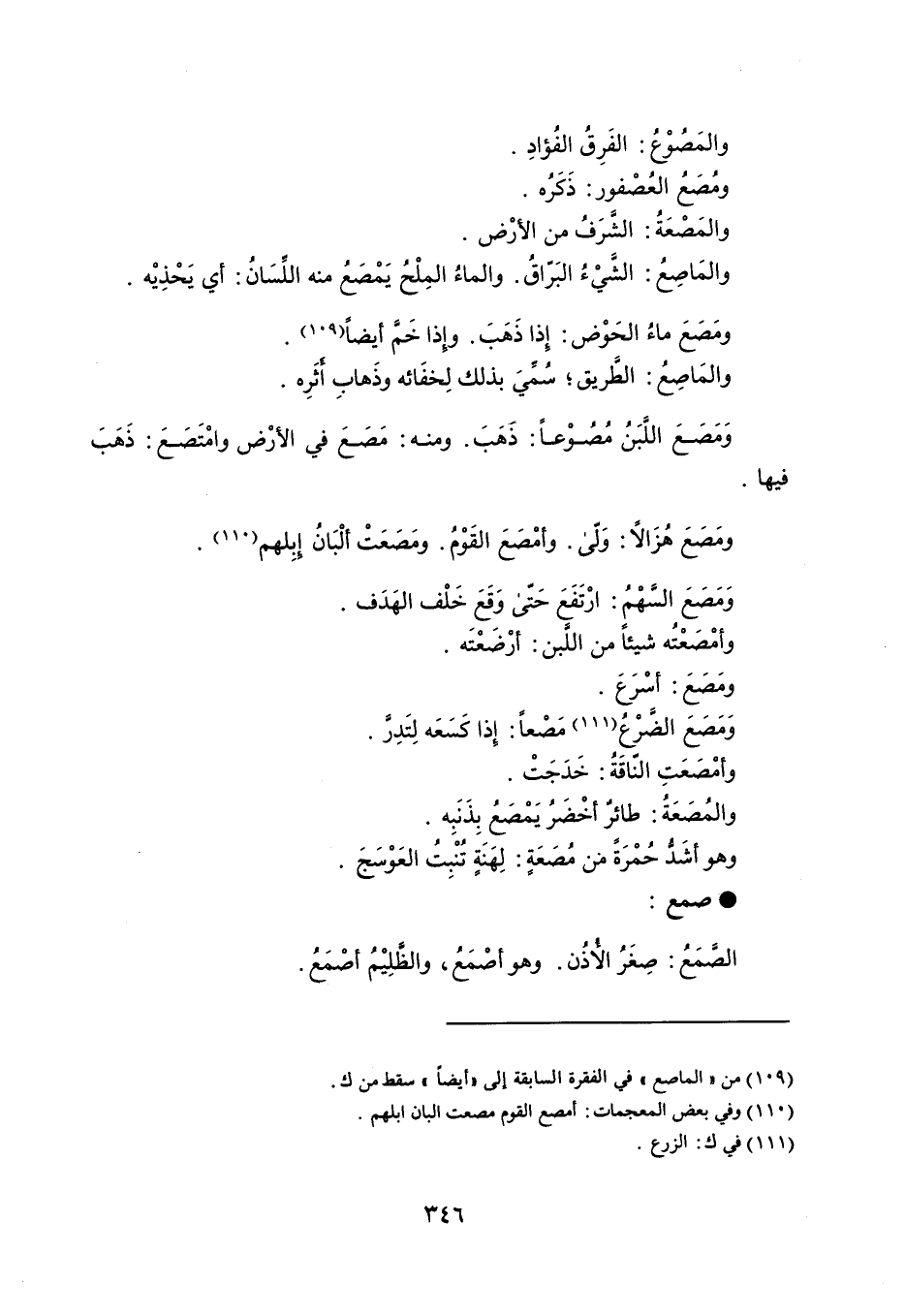 وَمَصَعَ اللبن مُصُوْعاً : ذهب . ومنه : مَصَعَ في الأرض وامْتَصَعَ : ذهب