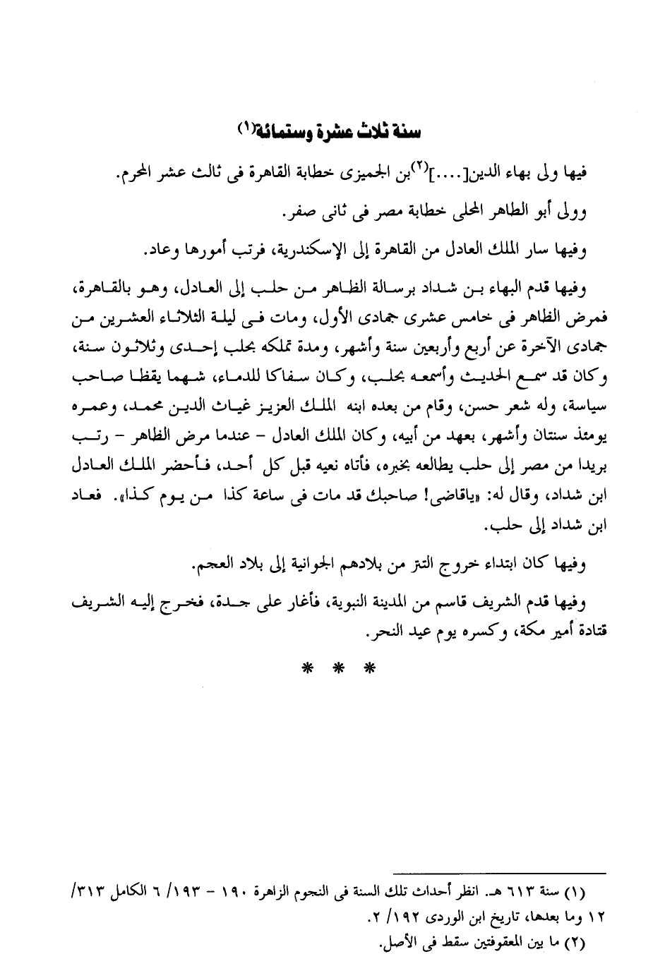 (سنة ثَلَاث عشرَة وسِتمِائَة)