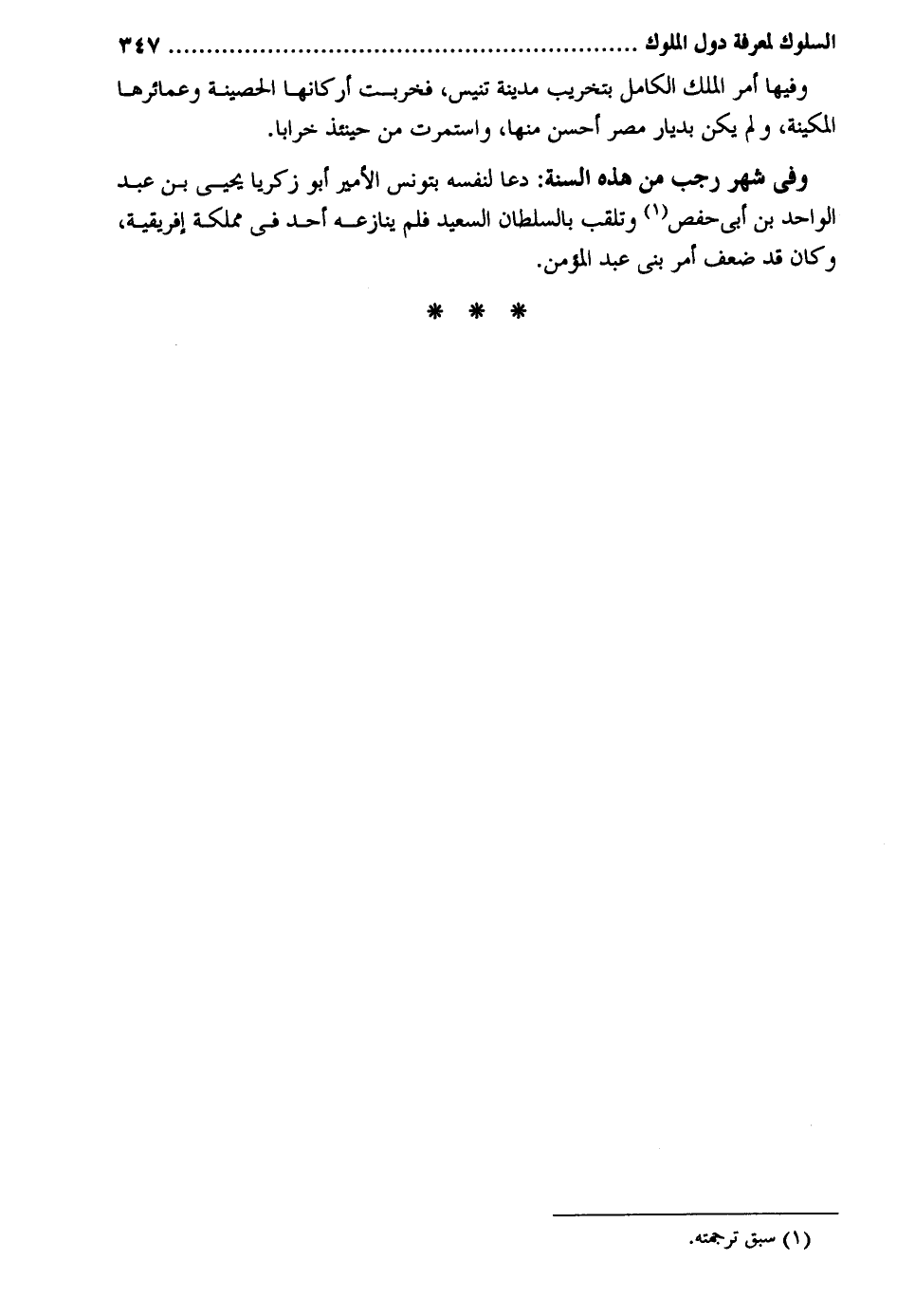 وفيهَا أَمر الْملك الْكَامِل بتخريب مَدِينَة تنيس فخربت أَرْكَانهَا الحصينة وعمائرها المكينة وَلم يكن بديار مصر أحسن مِنْهَا واستمرت من حِينَئِذٍ خرابا. وَفِي شهر رَجَب من هَذِه السّنة: دَعَا لنَفسِهِ بتونس الْأَمِير أَبُو زَكَرِيَّا يحيى بن عبد الْوَاحِد بن أبي حَفْص وتلقب بالسلطان السعيد فَلم ينازعه أحد فِي مملكة إفريقية وَكَانَ قد ضعف أَمر بني عبد الْمُؤمن.
