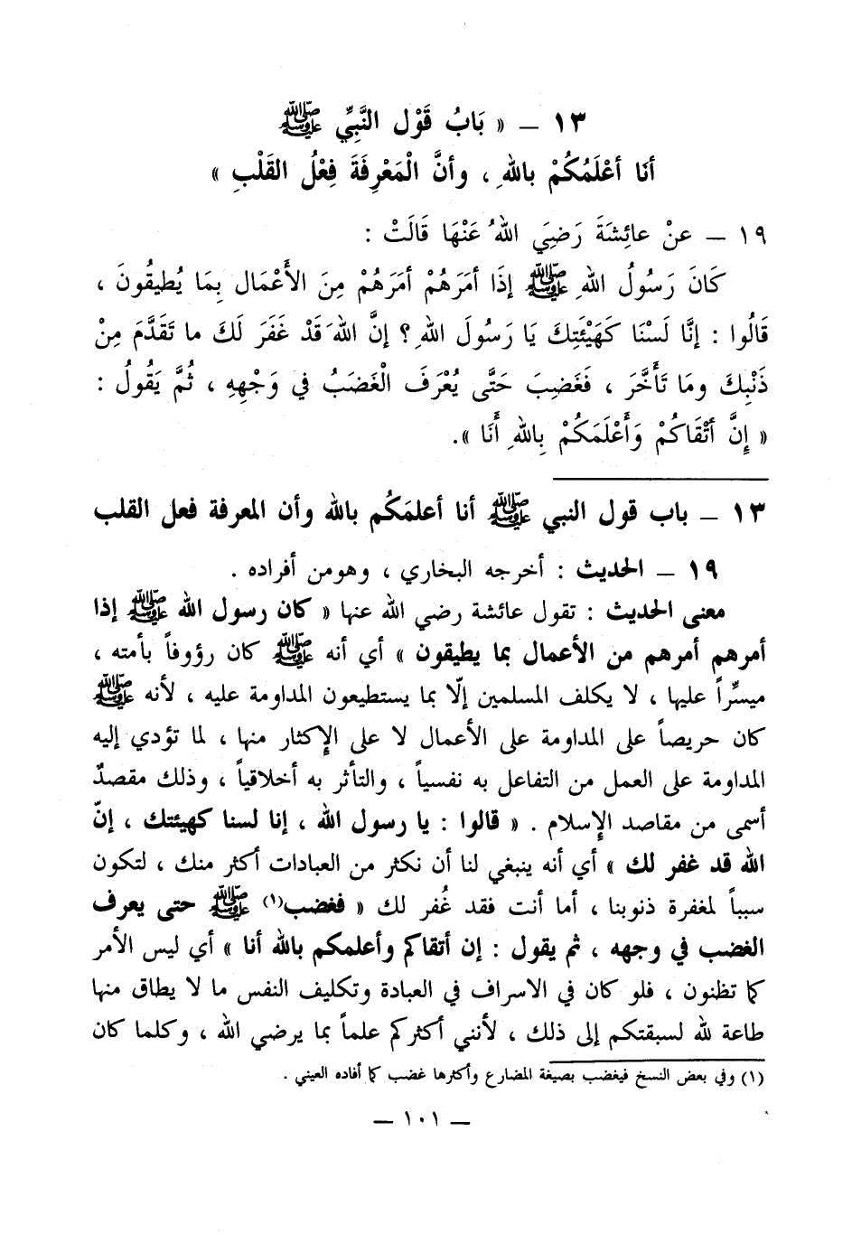 13 - " بَابُ قَوْل النَّبِيِّ - صلى الله عليه وسلم - أنا أعْلَمُكُمْ باللهِ، وأنَّ الْمَعْرِفَةَ فِعْلُ القَلْبِ "