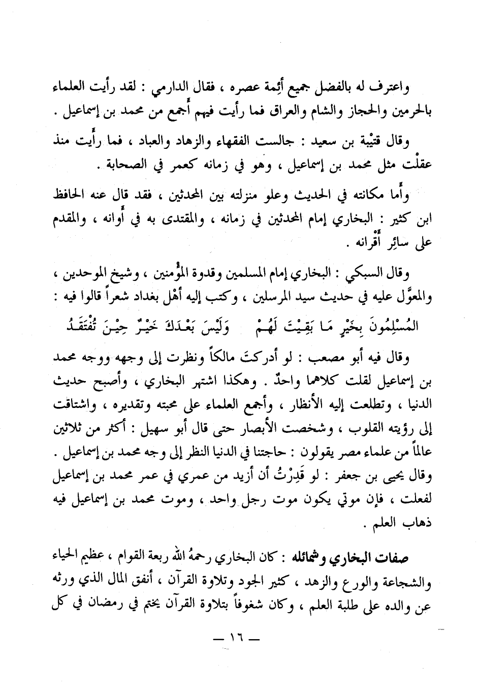 وقال السبكي: البخاري إمام المسلمين وقدوة المؤْمنين، وشيخ الموحدين، والمعوَّل عليه في حديث سيد المرسلين، وكتب إليه أهْل بغداد شعراً قالوا فيه: