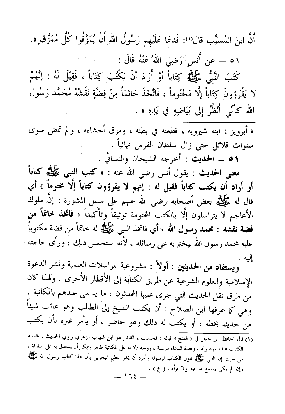ْويستفاد من الحديثين: أولاً: مشروعية المراسلات العلمية ونشر الدعوة الإِسلامية والعلوم الشرعية عن طريق الكتابة إلى الأقطار الأخرى. ولهذا كان من طرق نقل الحديث التي جرى عليها المحدثون، ما يسمى عندهم بالمكاتبة.