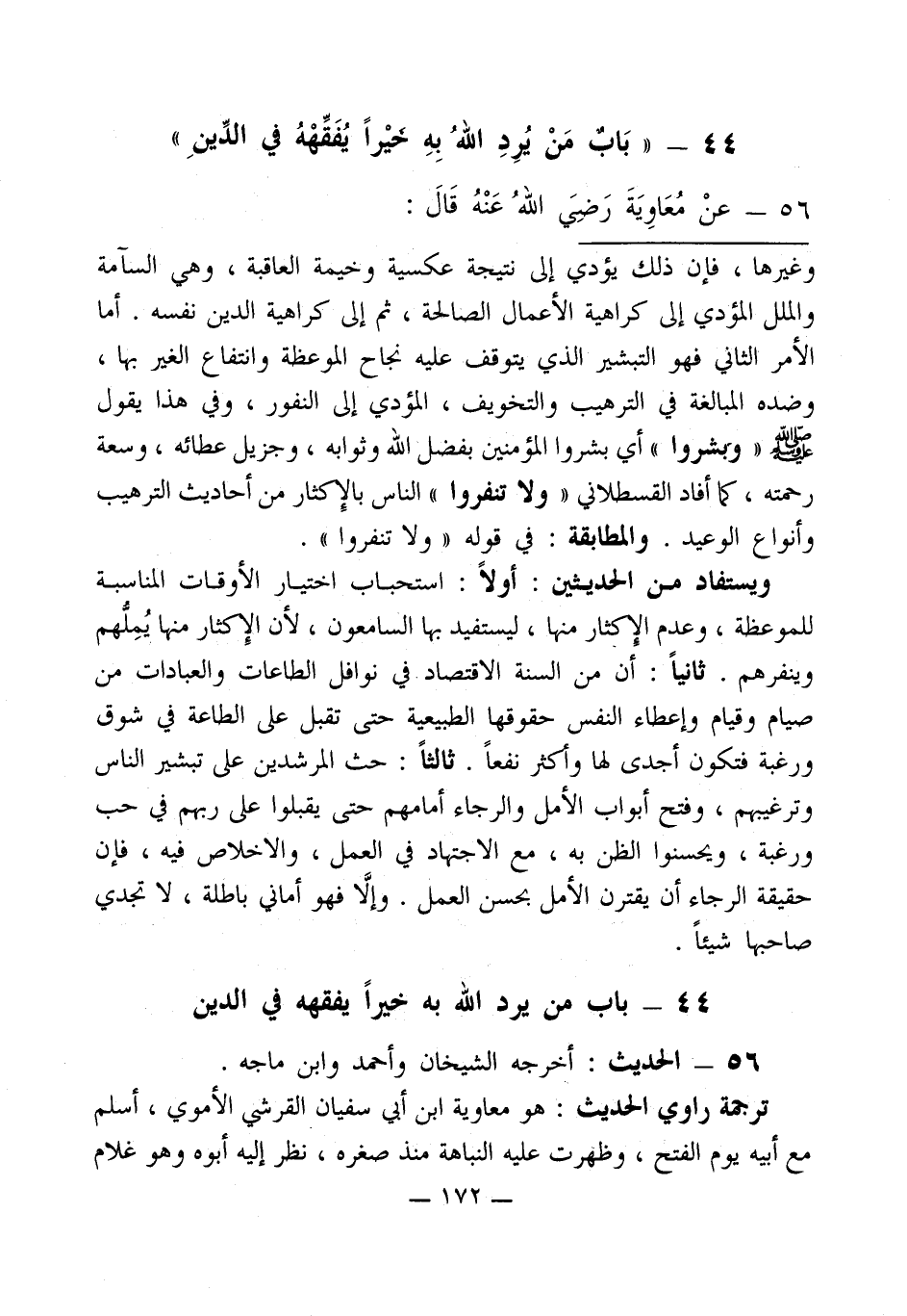 44 - " بَابٌ مَنْ يُرِدِ اللهُ بِهِ خيراً يُفَقِّهْهُ في الدِّينِ "