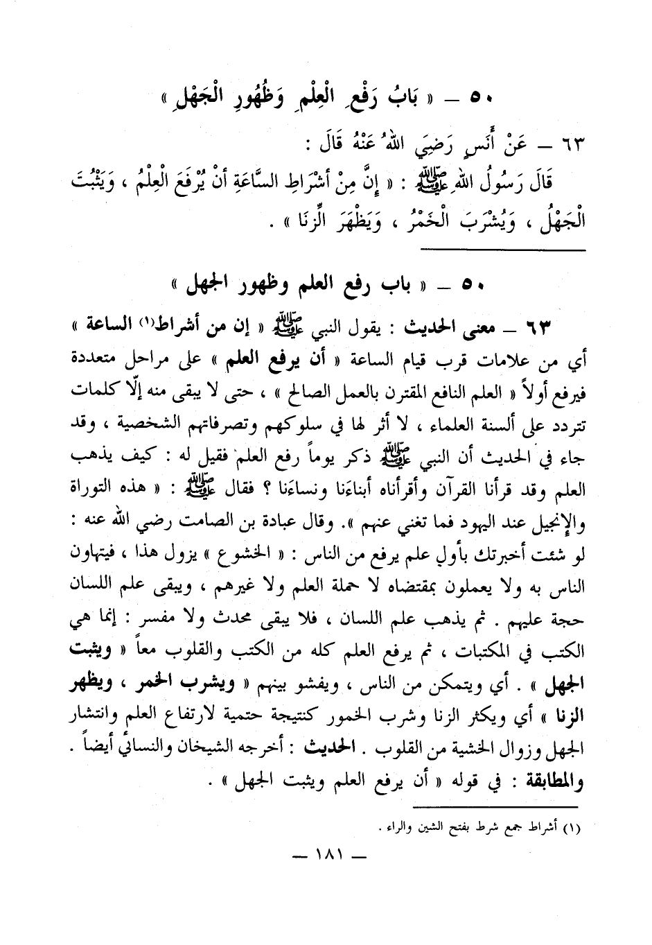 50 - " بَابُ رَفْعِ الْعِلْمِ وَظُهُورِ الْجَهْلِ "