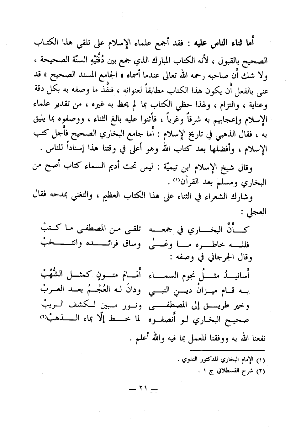 صحيح البخاري لو أنصفوه ... لما خط إلاّ بماء الذهبْ (¬2)