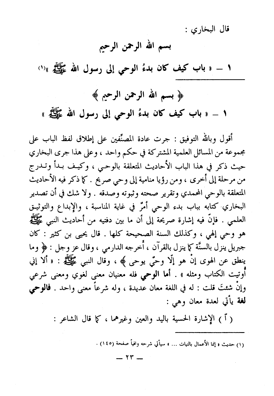 1 - " باب كيف كان بدءُ الوحي إلى رسول الله - صلى الله عليه وسلم - " (¬1)