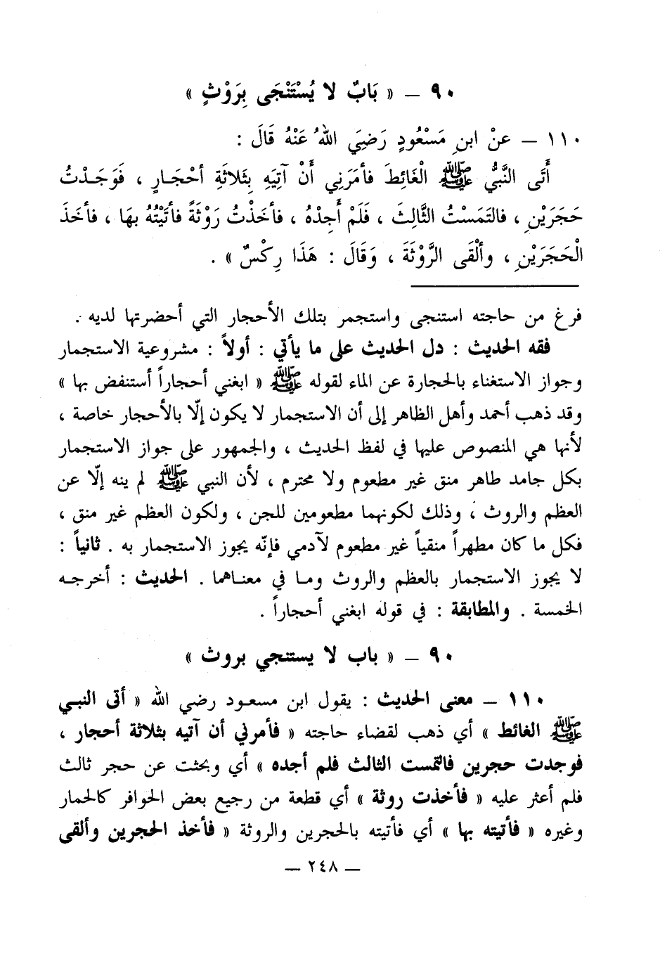 90 - " بَاب لا يُسْتَنْجَى بِرَوْثٍ "