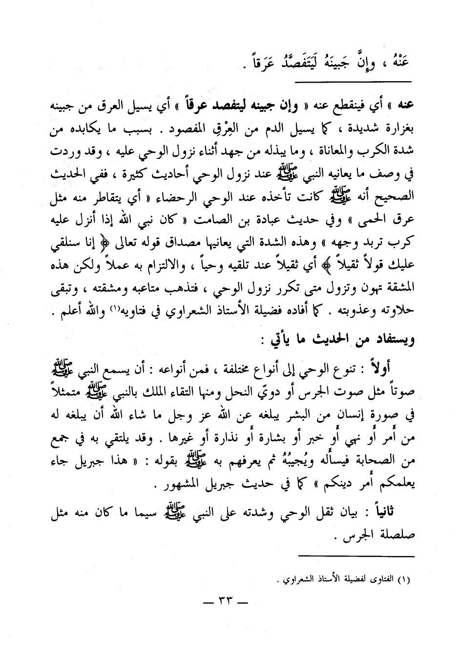 ثانياً: بيان ثقل الوحي وشدته على النبي - صلى الله عليه وسلم - سيما ما كان منه مثل صلصلة الجرس.