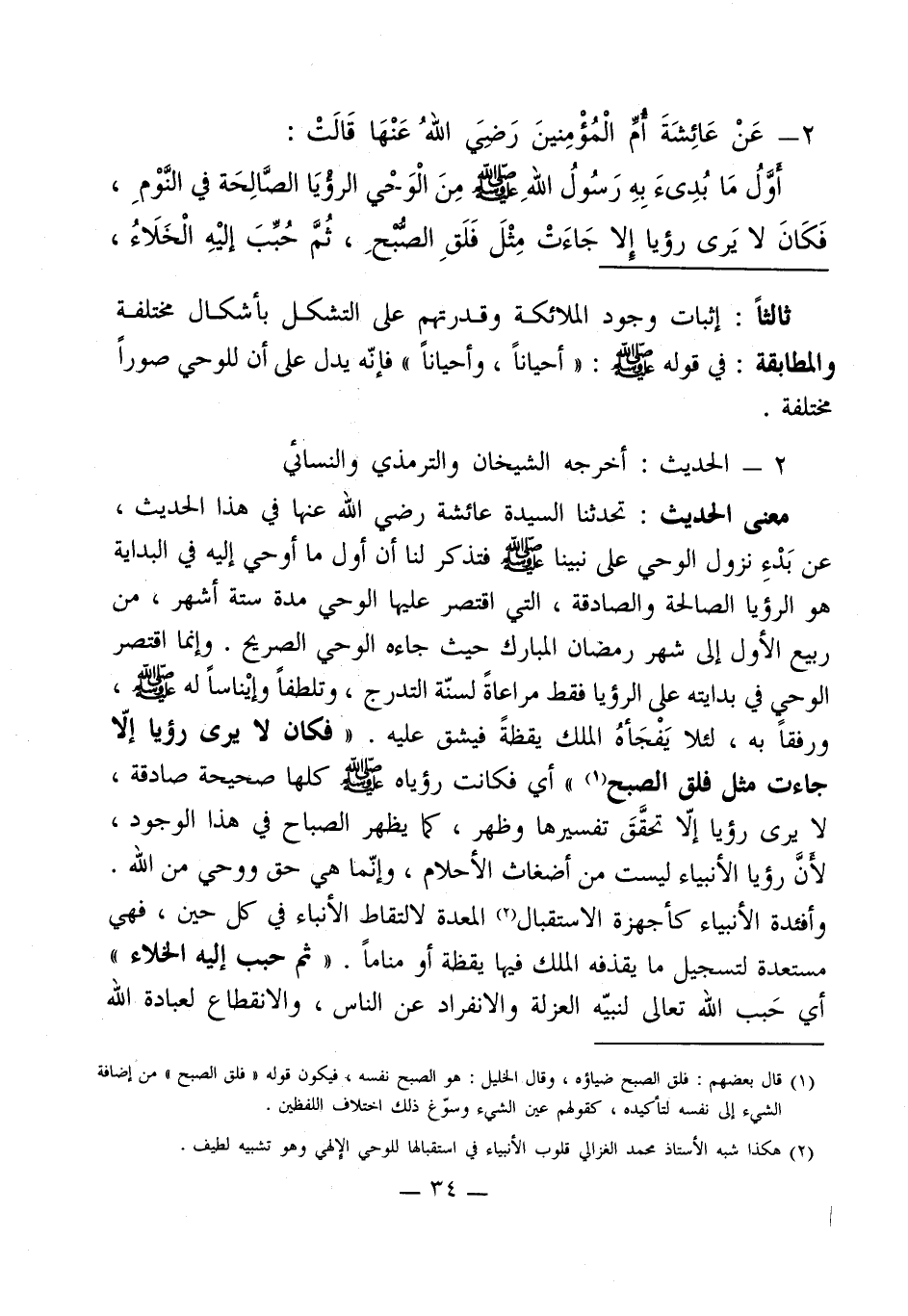 أوَّلُ مَا بُدِىءَ بِهِ رَسُولُ اللهِ - صلى الله عليه وسلم - مِنَ الْوَحْي الرؤيَا الصَّالِحَة في النَّوْمِ، فَكَانَ لا يَرى رؤيا إِلا جَاءَتْ مِثْلَ فَلَقِ الصُّبحِ، ثُمَّ حُبِّبَ إليْهِ الْخَلاءُ،