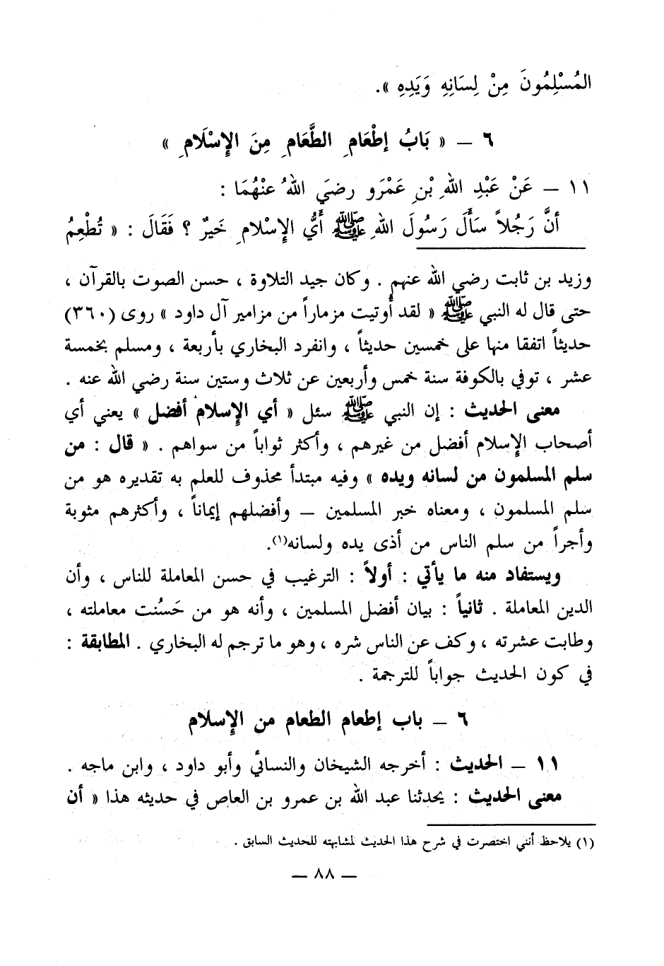 6 - " بَابُ إطْعَامِ الطّعَامِ مِنَ الإِسْلَامِ "