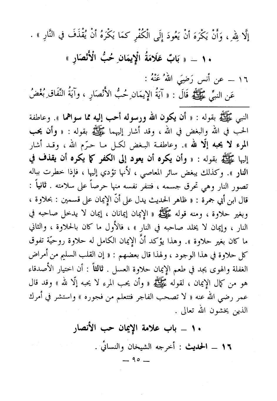 10 - " بَابٌ عَلَامَةُ الإيمَانِ حُبُّ الْأنصَارِ "
