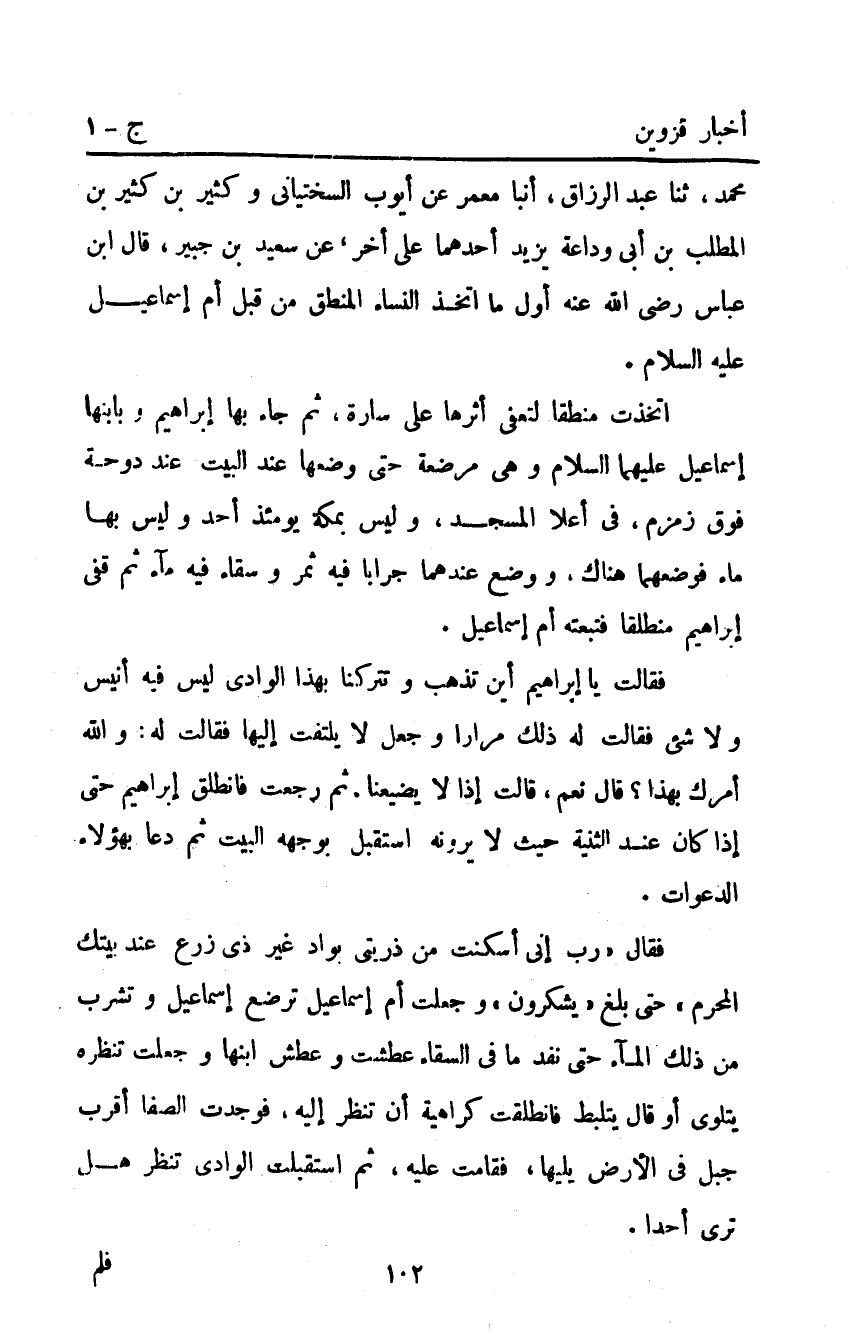 مُحَمَّدٍ ثَنَا عَبْدُ الرَّازَّقِ أَنْبَأَ مَعْمَرٌ عَنْ أَيُّوبَ السَّخْتِيَانِيِّ وَكَثِيرِ بْنِ كَثِير بْنِ الْمُطِّلِبِ بْنِ أَبِي وَدَاعَةَ يَزِيدُ أَحَدُهُمَا عَلَى آخَرَ عَنْ سَعِيدِ بْنِ جُبَيْرٍ قَالَ ابْنُ عَبَّاسٍ رَضِيَ اللَّهُ عَنْهُ: أَوَّلُ مَا اتَّخَذَ النِّسَاءُ الْمَنْطِقَ مِنْ قِبَلِ أُمِّ إِسْمَاعِيلَ عَلَيْهِ السَّلامُ.