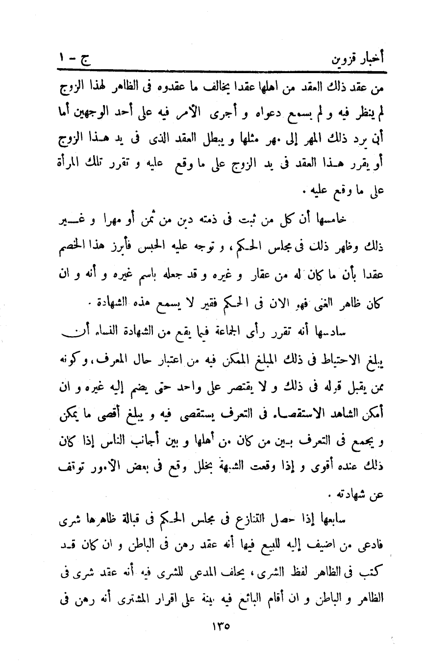 خامسها: أن كل من ثبت في ذمته دين من ثمن أو مهرا وغير ذلك وظهر ذلك في مجلس الحكم وتوجه عليه الحبس فأبرز هذا الخصم عقدا بأن ما كان له من عقار وغيره وقد جعله باسم غيره وأنه وإن كان ظاهر الغنى فهو الآن في الحكم فقير لا يسمع هذه الشهادة.