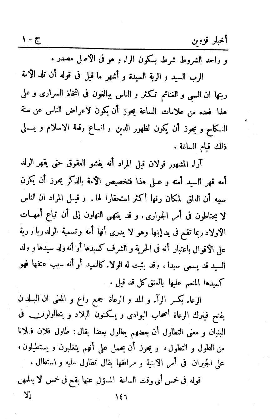 آراء المشهور قولان: قيل المراد أنه يفشو العقوق حتى يقهر الولد أمه قهر السد أمته وعلى هذا فتخصيص الأمة بالذكر يجوز أن يكون سببه أن العاق لمكان رقها أكثر استحقارا لها, وقيل: المراد أن الناس لا يحتاطون في أمر الجواري وقد ينتهي التهاون إلى أن تباع أمهات الأولاد ربما تقع في يد ابنها وهو لا يدري أنها أمه وتسمية الولد ربا وربة على الأقوال باعتبار أنه في الحرية والشرف كسيدها أو أنه ولد سيدها وولد السيد قد يسمى سيدا وقد يثبت له الولاء كالسيد أو أنه سبب عتقها فهو كسيدها المنعم عليها بالعتق كل قد قيل.