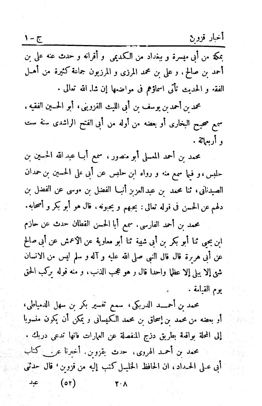 مُحَمَّد بْن أَحْمَدَ بْن يوسف بْن أبي الليث القزويني أبو الحسين الفقيه سمع صحيح البخاري أو بعضه من أوله من أبي الفتح الراشدي سنة ست وأربعمائة.