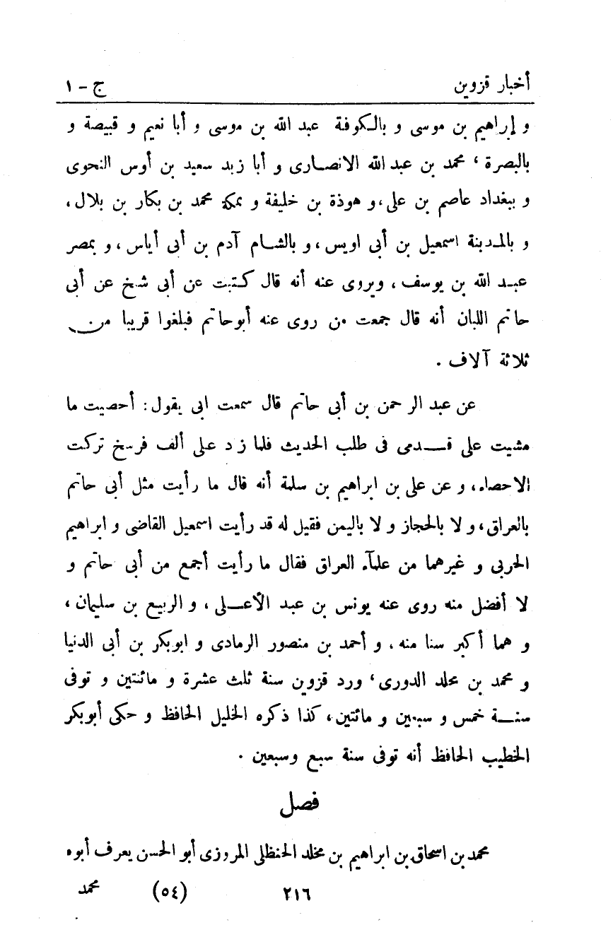 عن عَبْد الرحمن بْن أبي حاتم قَالَ سمعت أبي يقول: أحصيت ما مشيت على قدمي في طلب الحديث فلما زد على ألف فرسخ تركت الإحصاء وعن علي بْن إبراهيم بْن سلمة أنه قَالَ: ما رأيت مثل أبي حاتم بالعراق ولا بالحجاز ولا باليمن فقيل له قد رأيت إسمعيل القاضي وإبراهيم الحربي وغيرهما من علماء العراق فقال ما رأيت أجمع من أبي حاتم ولا أفضل منه روى عنه يونس بْن عَبْد الأعلى والربيع بْن سليمان وهما أكبر سنا منه وأحمد بْن منصور الرمادي وأبو بكر بْن أبي الدنيا ومحمد بن محلد الدوري ورد قزوين سنة ثلث عشرة ومائتين وتوفي سنة خمس وسبعين ومائتين كذا ذكره الخليل الحافظ وحكى أبو بكر الخطيب الحافظ أنه توفي سنة سبع وسبعين.