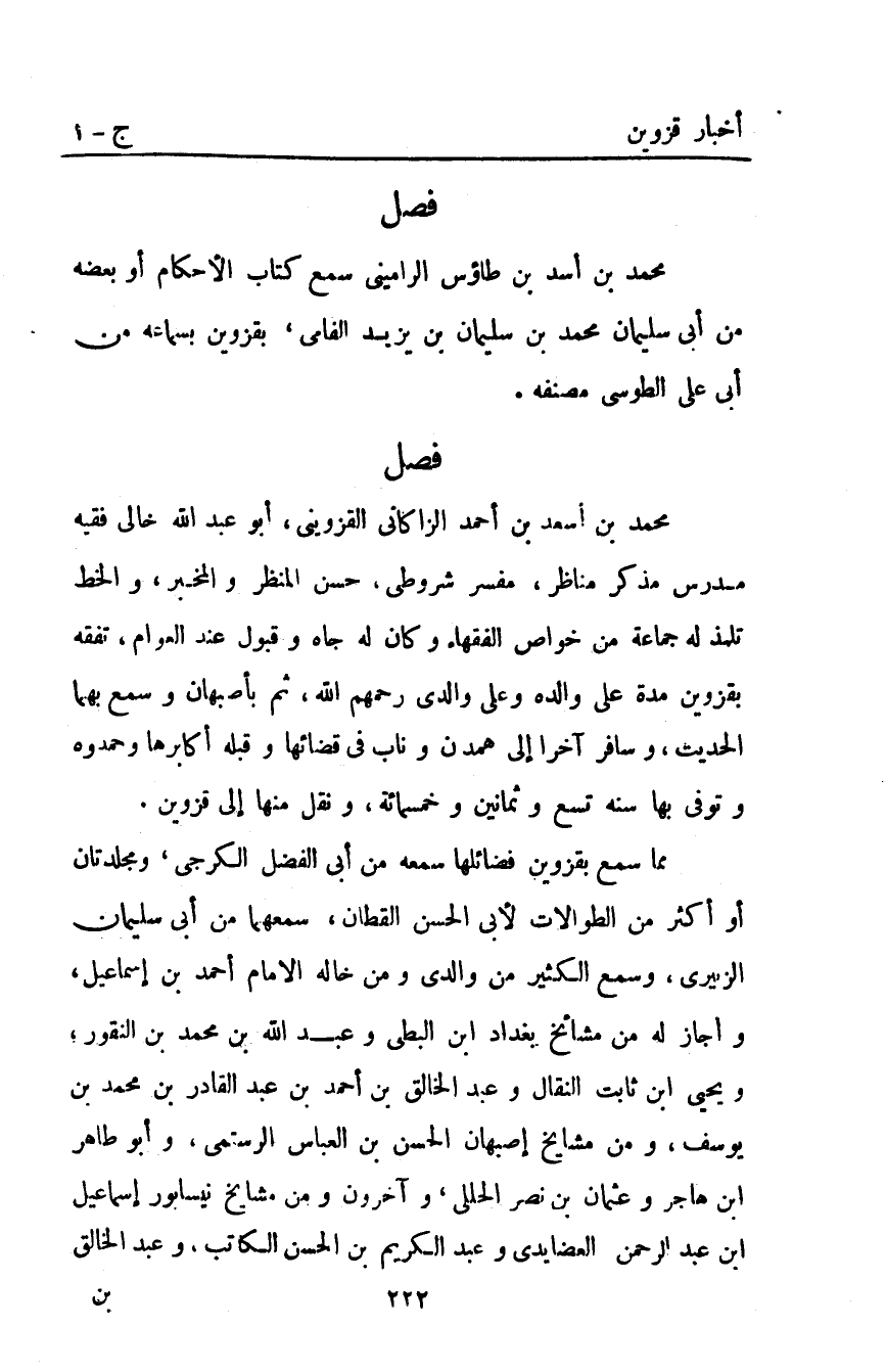 محمد بن أسد بن طاؤس الراميني سمع كتاب الأحكام أو بعضه من أبي سليمان مُحَمَّد بْن سليمان بْن يزيد الفامي بقزوين بسماعه من أبي علي الطوسي مصنفه.