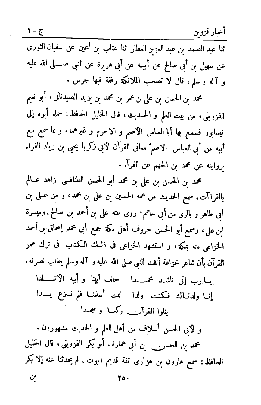 مُحَمَّد بْن الحسن بْن علي بْن عمر بْن مُحَمَّد بْن يزيد الصيدناني أبو نعيم القزويني من بيت العلم والحديث قَالَ الخليل الحافظ: حمله أبوه إلى نيسابور فسمع بها أبا العباس الأصم والأخرم وغيرهما ومما سمع مع أبيه من أبي العباس الأصم معاني القرآن لأبي زكريا يحيى بْن زياد الفراء بروايته عن مُحَمَّد بْن الجهم عن الفراء.