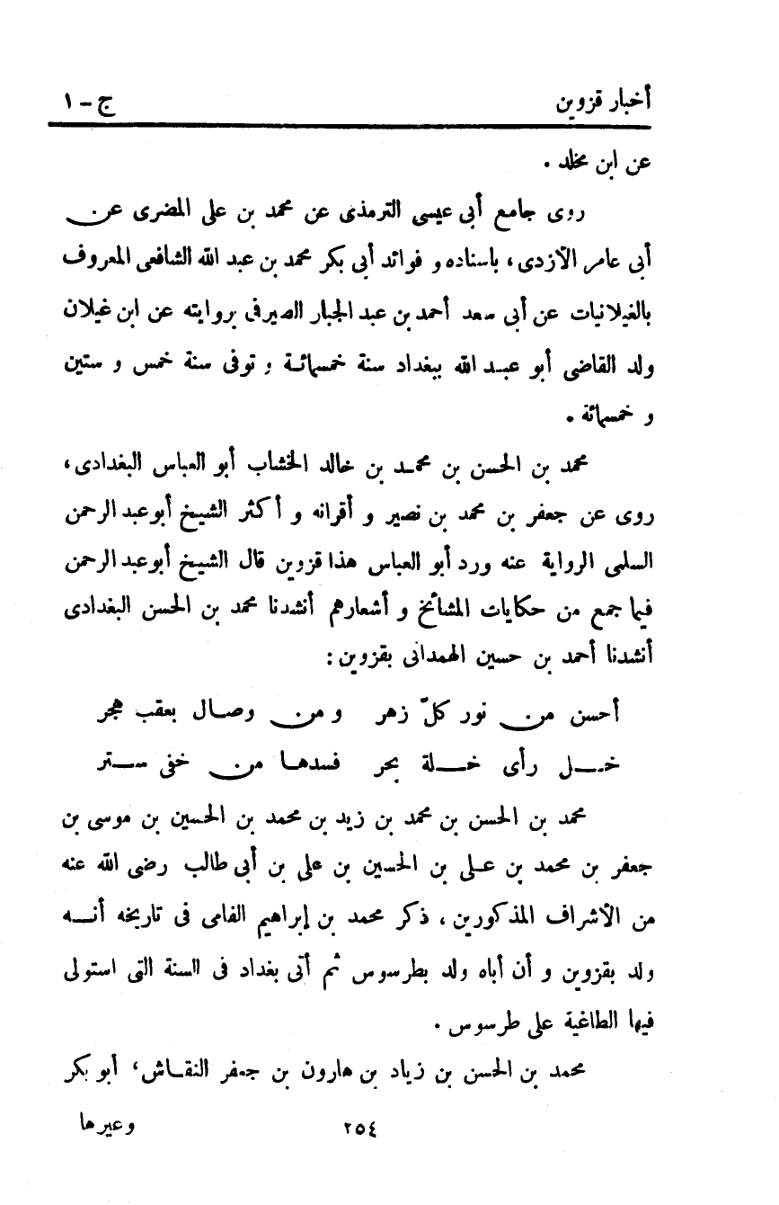 مُحَمَّد بْن الحسن بْن مُحَمَّد بْن زيد بْن مُحَمَّد بْن الحسين بْن موسى بْن جعفر بْنُ مُحَمَّدِ بْنِ عَلِيِّ بْنِ الحسين بْن علي بْن أبي طَالِبٍ رَضِيَ اللَّهُ عَنْهُ مَنْ الأشراف المذكورين ذكر مُحَمَّد بْن إبراهيم الفامي في تاريخه أنه ولد بقزوين وأن أباه ولد بطرسوس ثم أتى بغداد في السنة التي استولى فيها الطاغية على طرسوس.