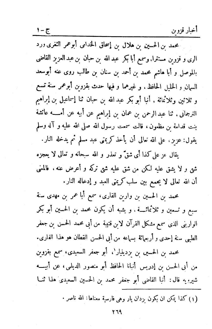 مُحَمَّد بْن الحسين بْن يزدينيار1 أبو جعفر السعيدي سمع بقزوين من أبي الحسن بْن إدريس أنبأنا الحافظ أبو منصور الديلمي عن أبيه شيرويه قَالَ: أنبأ القاضي أبو جعفر مُحَمَّد بْن الحسين السعيدي هذا ثنا