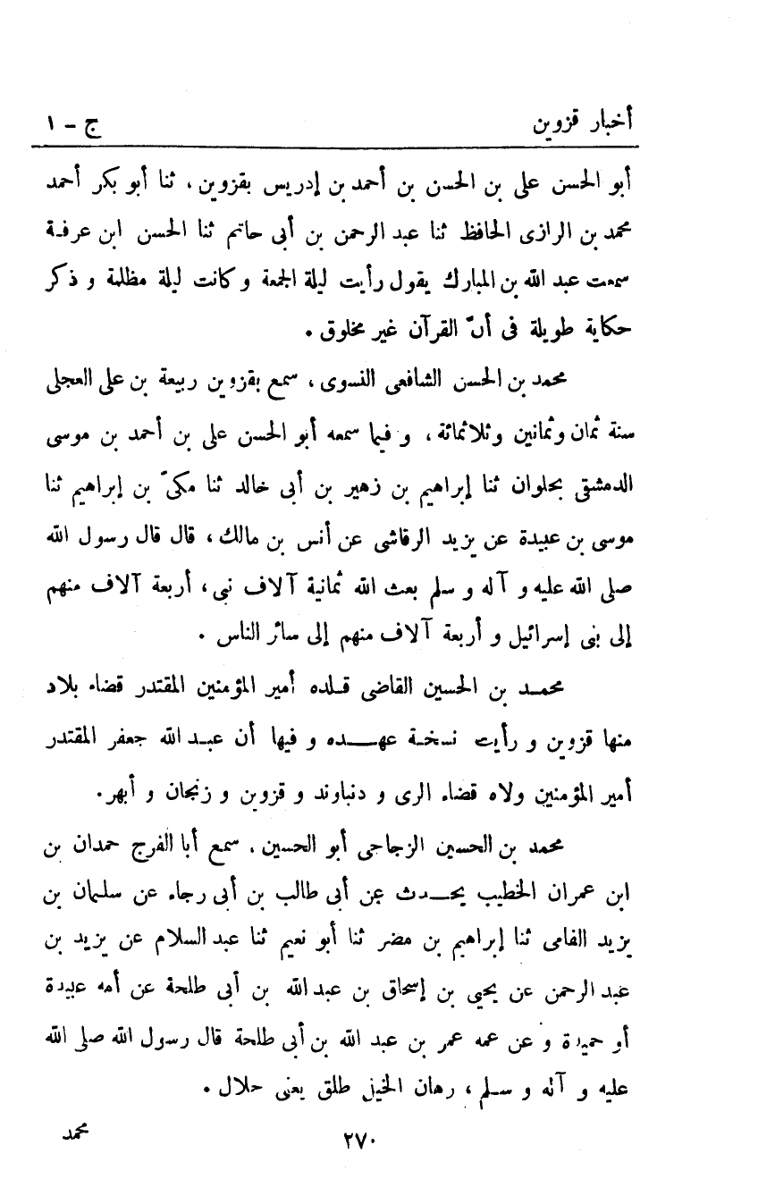 مُحَمَّد بْن الحسين القاضي قلده أمير المؤمنين المقتدر قضاء بلاد منها قزوين ورأيت نسخة عهده وفيها أن عبد الله جعفر المقتدر أمير المؤمنين ولاه قضاء الري ودنباوند وقزوين وزنجان وأبهر.