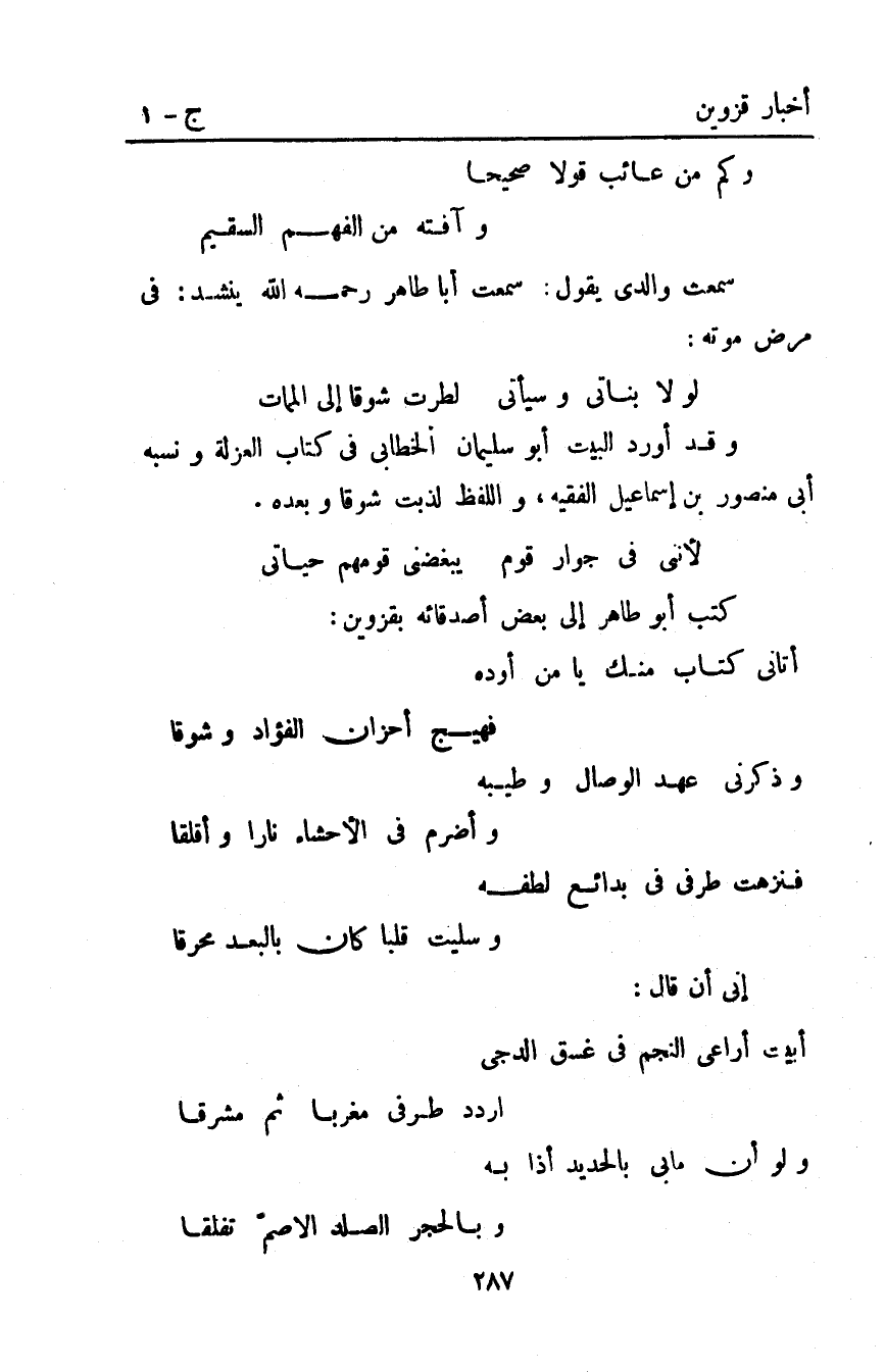 كتب أبو طاهر إلى بعض أصدقائه بقزوين: