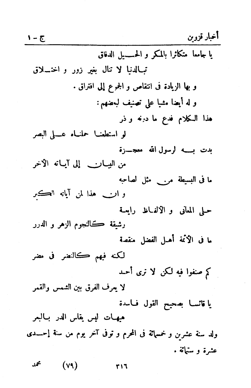 يا جامعا متكاثرا بالمكر والحيل الدقاق ... تبا لدنيا لا تنال بغير زور واختلاق
