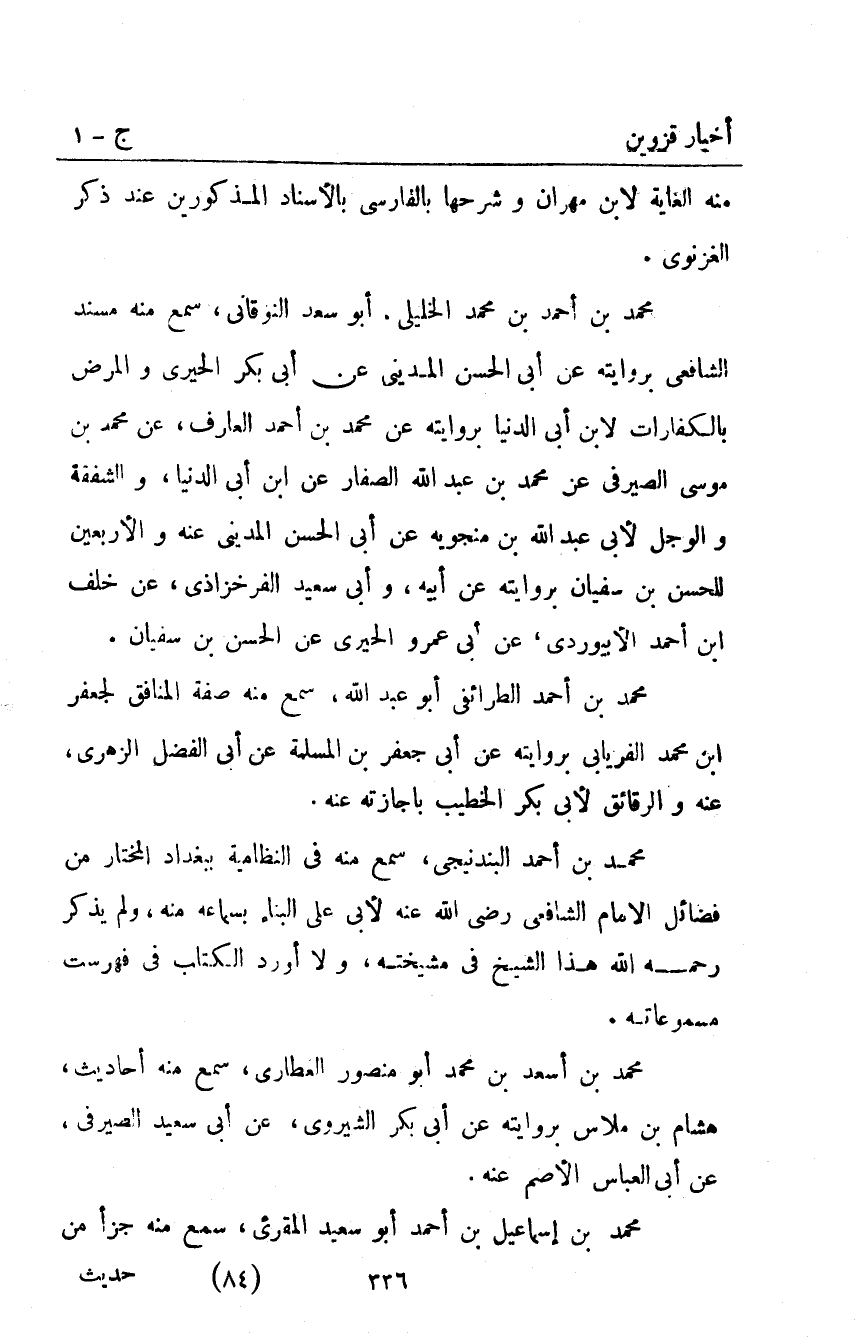 منه الغاية لابن مهران وشرحها بالفارسي بالإسناد المذكورين عند ذكر الغزنوي.