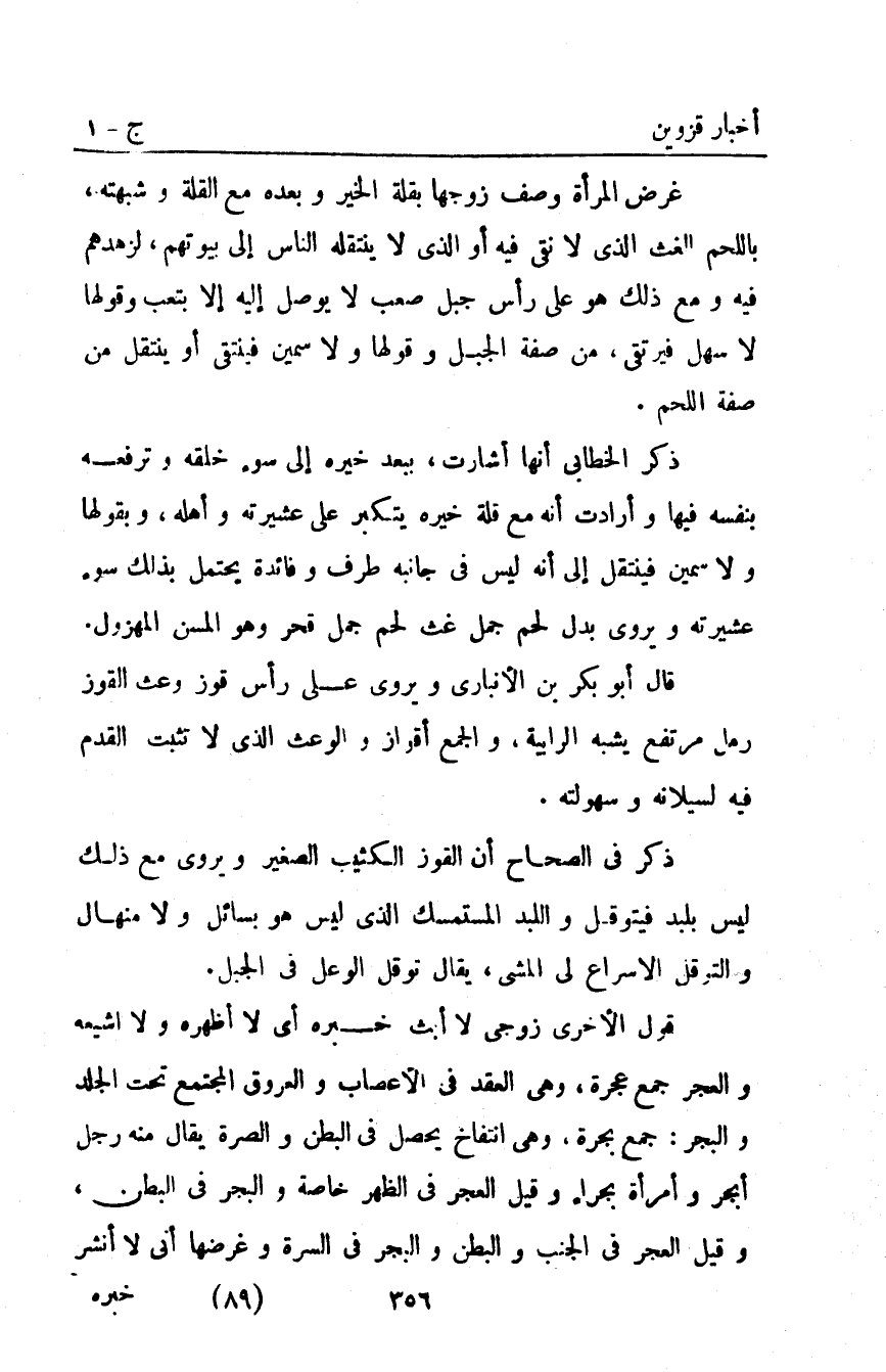 قول الأخرى: زوجي لا أبث خبره أي لا أظهره ولا أشيعه والعجر جمع عجرة وهي العقد في الأعصاب والعروق المجتمع تحت الجلد والبجر جمع بجرة وهي انتفاخ يحصل في البطن والصرة يقال منه رجل أبجر وامرأة بجراء وقيل العجر في الظهر خاصة والبجر في البطن وقيل العجر في الجنب والبطن والبجر في السرة وغرضها أني لا أنشر