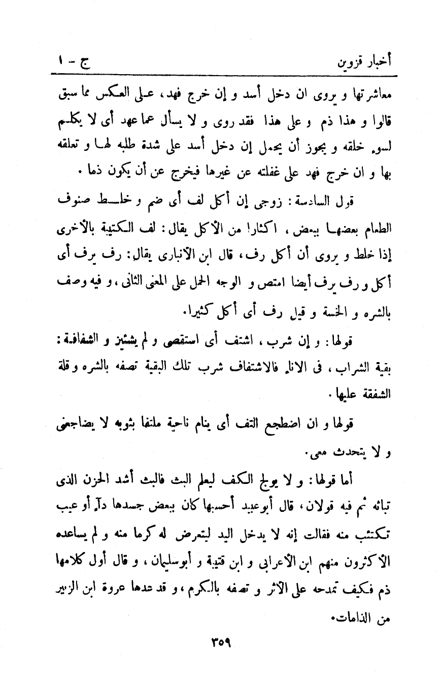 قول السادسة: زوجي إن أكل لف أي ضم وخلط صنوف الطعام بعضها ببعض إكثارا من الأكل يقال: لف الكتيبة بالأخرى إذا خلط ويروى أن أكل رف قَالَ ابن الأنباري: يقال: رف يرف أي أكل ورف يرف أيضا امتص والوجه الحمل على المعنى الثاني وفيه وصف بالشره والخسة وقيل رف أي أكل كثيرا.