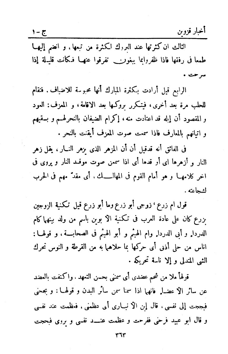الرابع: قيل أرادات بكثرة المبارك أنها محبوسة للأضياف. فتقام للحلب مرة بعد أخرى فيتكرر بروكها بعد الإقامة والمعزف العود والمقصود أن إبله قد اعتادت منه إكرام الضيفان بالنحر لهم وبسقيهم وإتيانهم بالمعارف فإذا سمعت صوت المعزف أيقنت بالنحر.