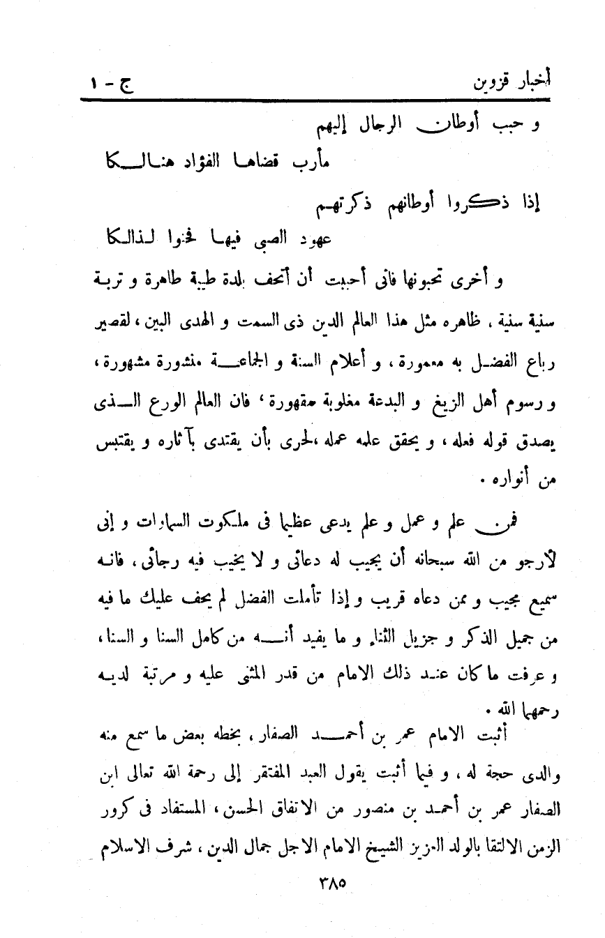 وأخرى تحبونها فأنى أحببت أن أتحف بلدة طيبة طاهرة وتربة سنية سنية ظاهرة مثل هذا العالم الدين ذي السمت والهدي البين لقصير رباع الفضل به معمورة وأعلام السنة والجماعة منشورة مشهورة ورسوم أهل الزيغ والبدعة مغلوبة مقهورة فإن العالم الورع الذي يصدق قوله فعله ويحقق علمه عمله لحري بأن يقتدى بآثاره ويقتبس من أنواره.