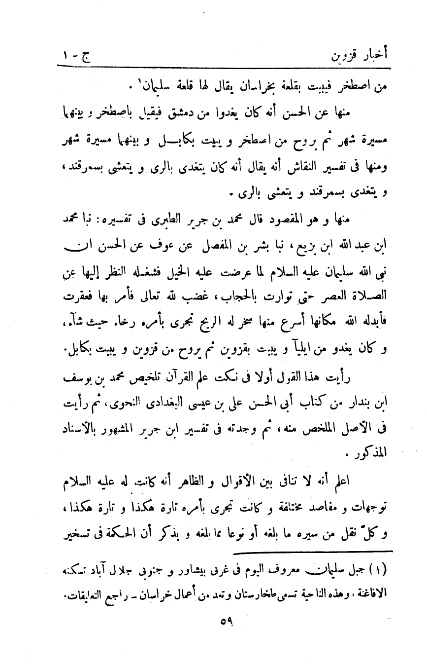 1 جبل سليمان معروف اليوم في غريي بيشاور وجنوبي جلال ابد تسكنه الافاغنة، وهذه الناحية تسمى طخارستان وتعد منأعمال خراسان - راجع التعليقات.