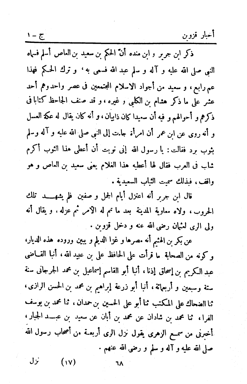 عن بكر بْن الهيثم أنه مصرها وغزا الديلم ويبين وروده هذه الديار وكونه من الصحابة ما قَرَأْتُ عَلَى الْحَافِظِ عَلِيِّ بْنِ عُبَيْدِ اللَّهِ أَنْبَأَ الْقَاضِي عَبْدُ الْكَرِيمِ بْنُ إِسْحَاقَ إِذْنًا أَنْبَأَ أَبُو الْقَاسِمِ إِسْمَاعِيلُ بْنُ مُحَمَّدٍ الْجُرْجَانِيُّ سَنَةَ ستة وسبعين وأربعمائة أَنْبَأَ أَبُو زُرْعَةَ إِبْرَاهِيمُ بْنُ مُحَمَّدِ بْنِ الْحَسَنِ الرَّازِيُّ ثَنَا الضَّحَّاكُ عَلَى الْمُكْتِبِ ثَنَا أَبُو عَلِيُّ الْحُسَيْنُ بْنُ حَمْدَانَ ثَنَا مُحَمَّدُ بْنُ يُوسُفَ الْفَرَا ثَنَا مُحَمَّدُ بْنُ شَادَانَ عَنْ مُحَمَّدِ بْنِ أَبَانٍ عَنْ سَعِيدِ بْنِ عَبْدِ الْجَبَّارِ أَخْبَرَنِي مَنْ سَمِعَ الزُّهْرِيَّ يَقُولُ نَزَلَ الرَّيَّ أَرْبَعَةٌ مِنْ أَصْحَابِ رَسُولِ اللَّهِ صَلَّى اللَّهُ عَلَيْهِ وَآلِهِ وَسَلَّمَ وَرَضِيَ الله عنهم.