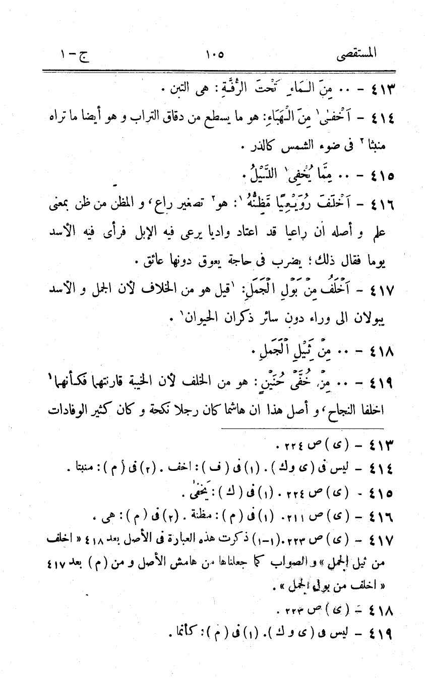417 - اخلف من بَوْل الْجمل قيل هُوَ من الْخلاف لِأَن الْجمل والأسد يبولان الى وَرَاء دون سَائِر ذكران الْحَيَوَان