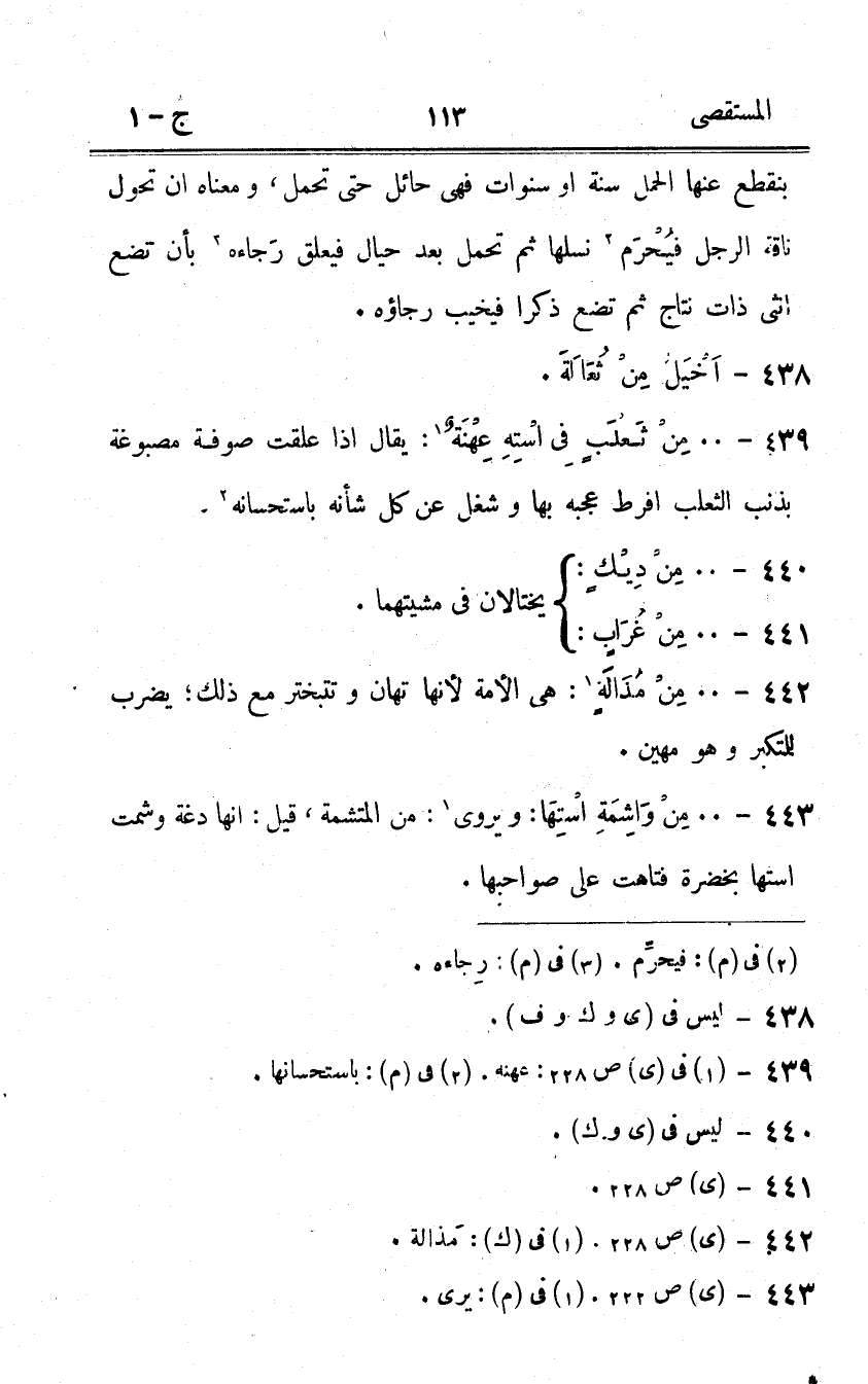 439 - 00 من ثَعْلَب فى أسته عهنة يُقَال اذا علقت صوفة مصبوغة بذنب الثَّعْلَب افرط عجبه بهَا وشغل عَن كل شَأْنه باستحسانه