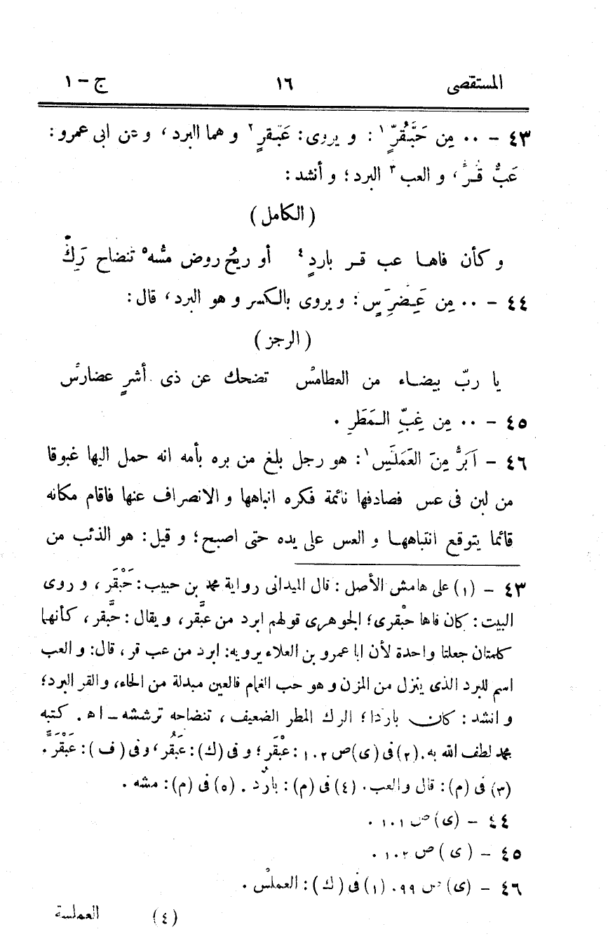 43 - 00 من حبقر ويروى عبقر وهما الْبرد وَعَن أبي عَمْرو عب قر والعب الْبرد وَأنْشد