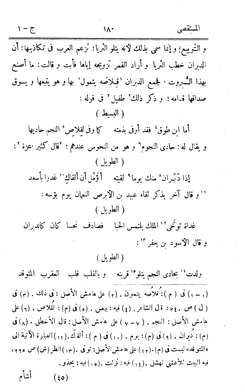 (إِذا دبران مِنْك يَوْمًا لَقيته ... أُؤَمِّل أَن أَلْقَاك غدوا بِأَسْعَد)