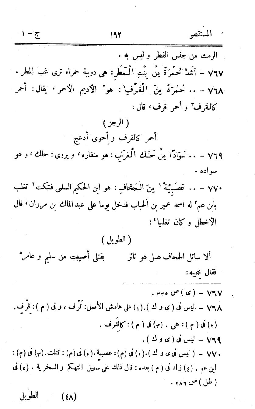 768 - 00 حمرَة من القرف هُوَ الْأَدِيم الْأَحْمَر يُقَال أَحْمَر كالقرف وأحمر قرف قَالَ