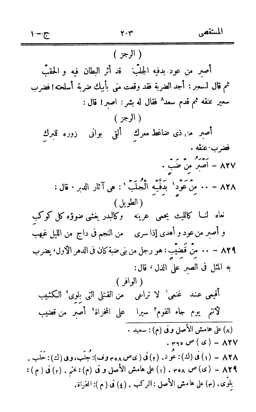 828 - 00 من عود بدفيه الجلب هِيَ آثَار الدبر قَالَ