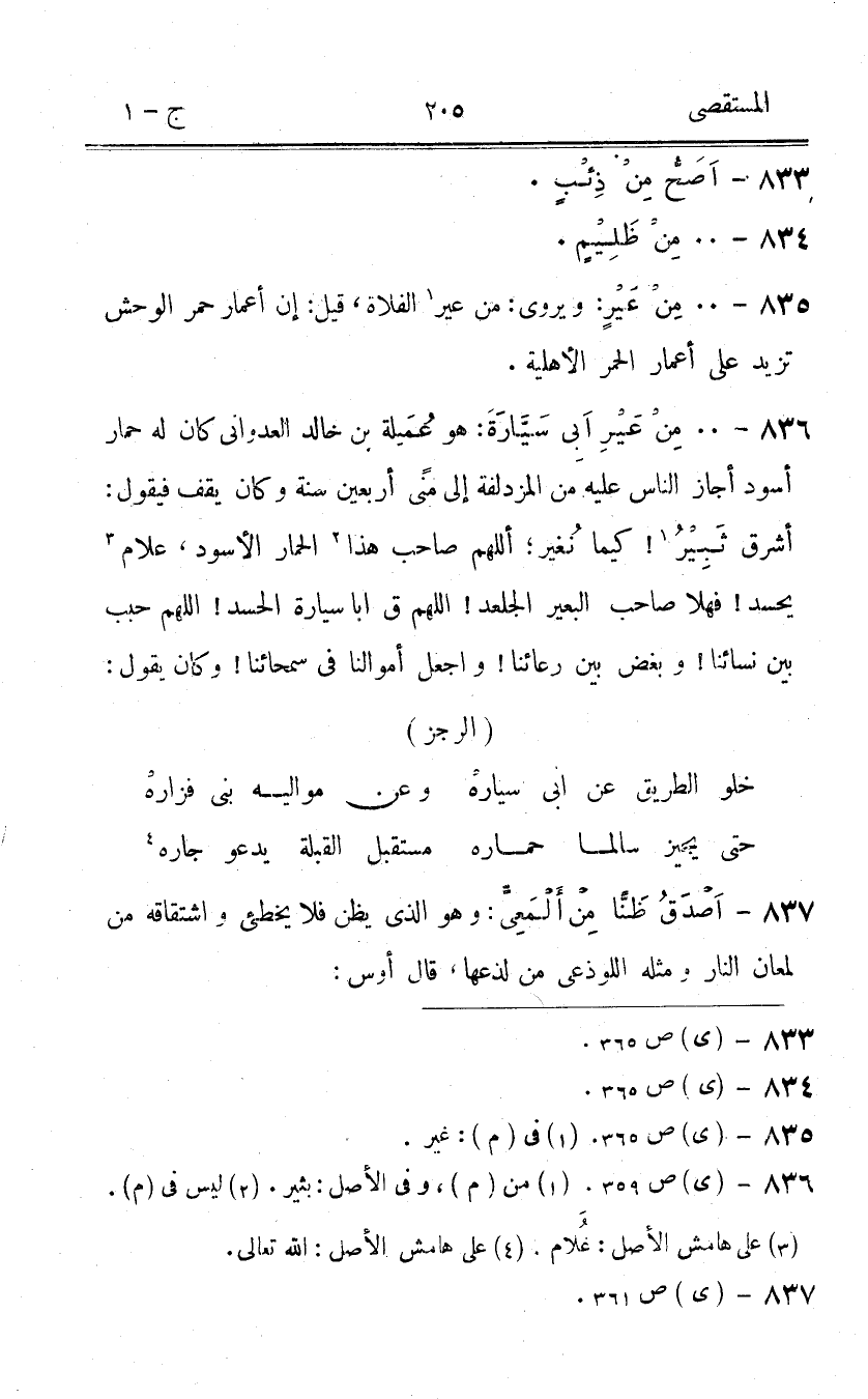 835 - 00 من عير ويروى من عير الفلاة قيل إِن أَعمار حمر الْوَحْش تزيد على أَعمار الْحمر الْأَهْلِيَّة
