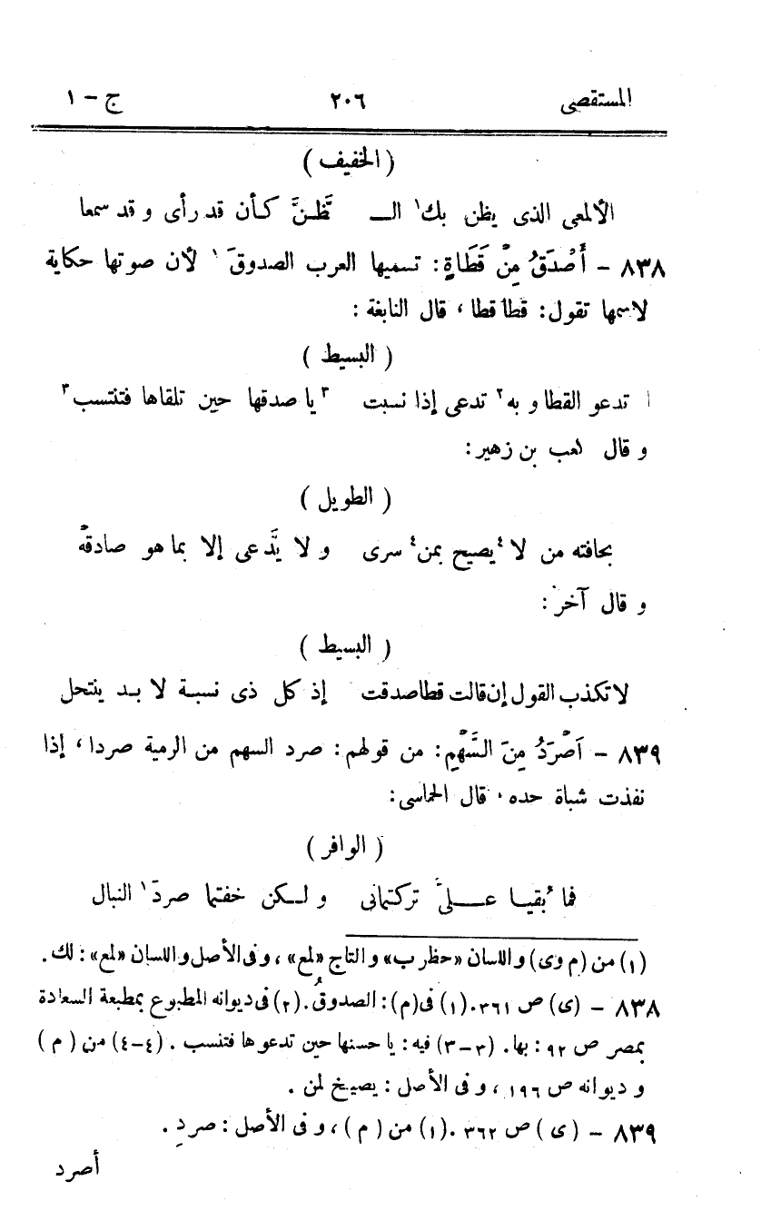 838 - أصدق من قطاة تسميها الْعَرَب الصدوق لِأَن صَوتهَا حِكَايَة لاسمها تَقول قطا قطا قَالَ النَّابِغَة