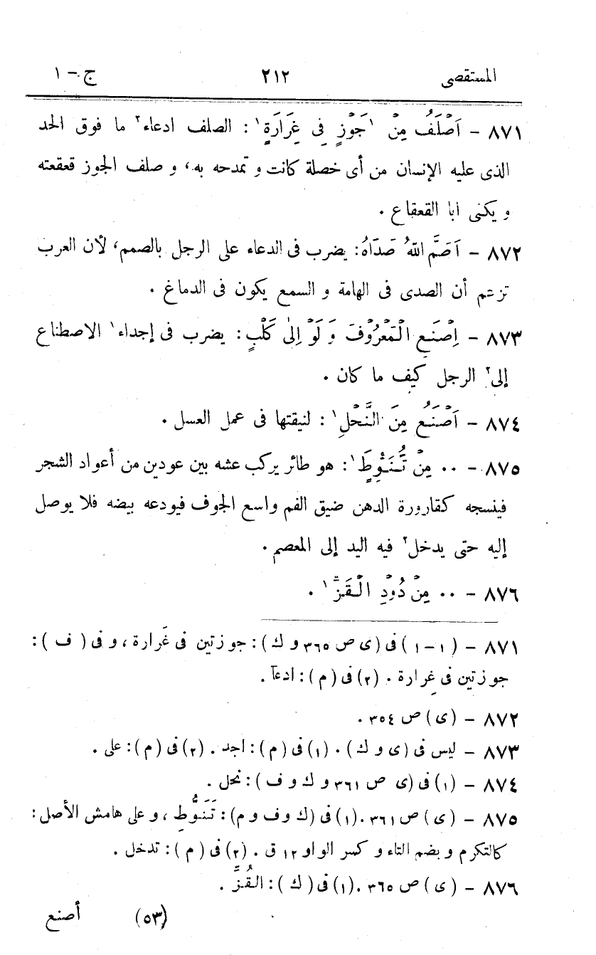 871 - اصلف من جوز فِي غرارة الصلف ادِّعَاء مَا فَوق الْحَد الَّذِي عَلَيْهِ الْإِنْسَان من أَي خصْلَة كَانَت وتمدحه بِهِ وصلف الْجَوْز قعقعته ويكني أَبَا الْقَعْقَاع