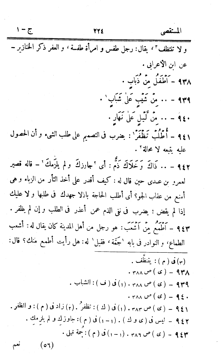 943 - اطمع من اشعب هُوَ رجل من اهل الْمَدِينَة كَانَ يُقَال لَهُ أشعب الطماع والنوادر فى بَابه جمة فَقيل لَهُ هَل رَأَيْت أطمع مِنْك قَالَ