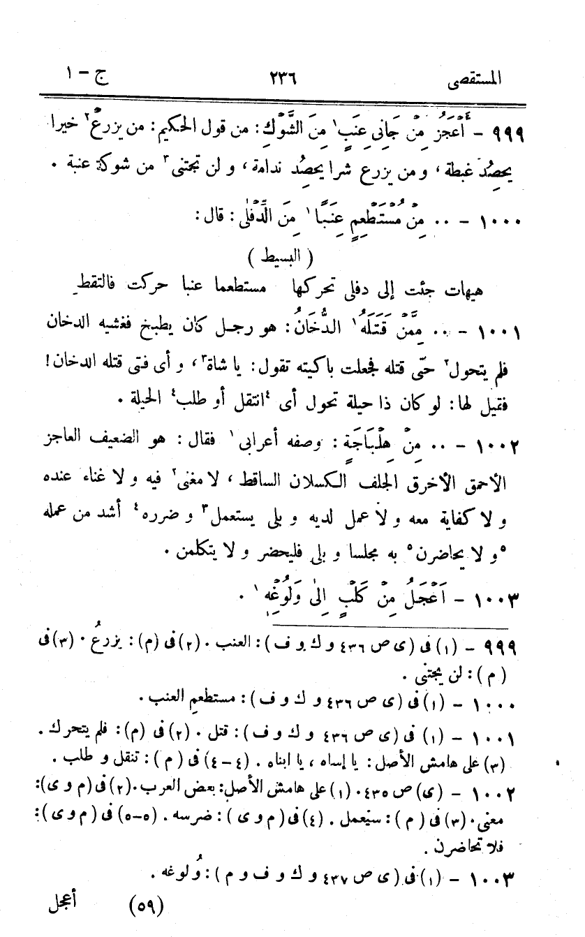 999 - أعجز من جاني عِنَب من الشوك من قَول الْحَكِيم من يزرع خيرا يحصد غِبْطَة وَمن يزرع شرا يحصد ندامة وَلنْ تجبتني من شَوْكَة عنبة