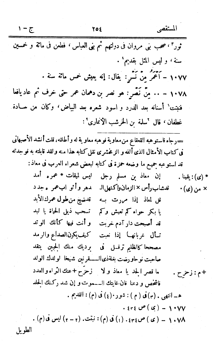 1078 - 00 من نصر هُوَ نصر بن دههمان عمر حَتَّى خرف ثمَّ عَاد يافعا فَنَبَتَتْ أَسْنَانه بعد الدرد واسود شعره بعد الْبيَاض وَكَانَ من سادة غطفان قَالَ سَلمَة بن الخرشب الْأَنمَارِي