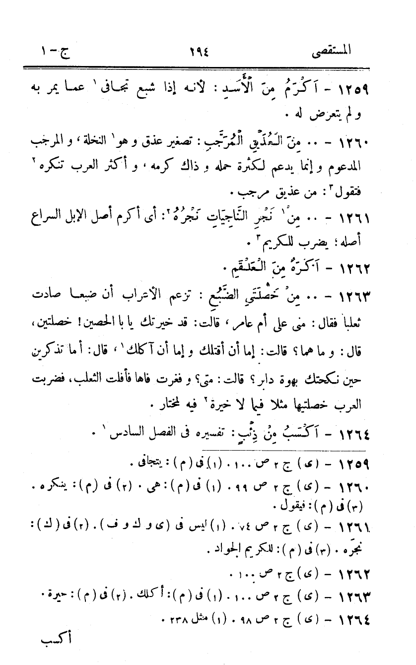 1259 - اكرم من الْأسد لِأَنَّهُ إِذا شبع تجافى عَمَّا يمر بِهِ وَلم يتَعَرَّض لَهُ
